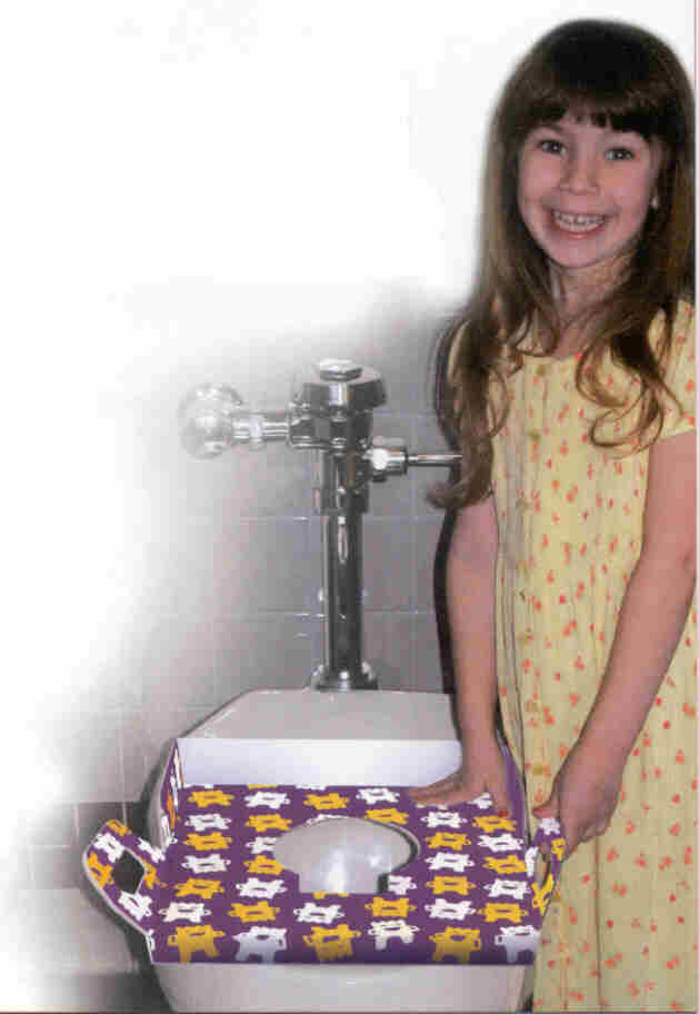 No matter how much toilet paper you put on it, the toilet seat will still be too big for your child. That's why you have a potty seat (toilet seat adaptor) at home-- and why you need a disposable one when you're out.